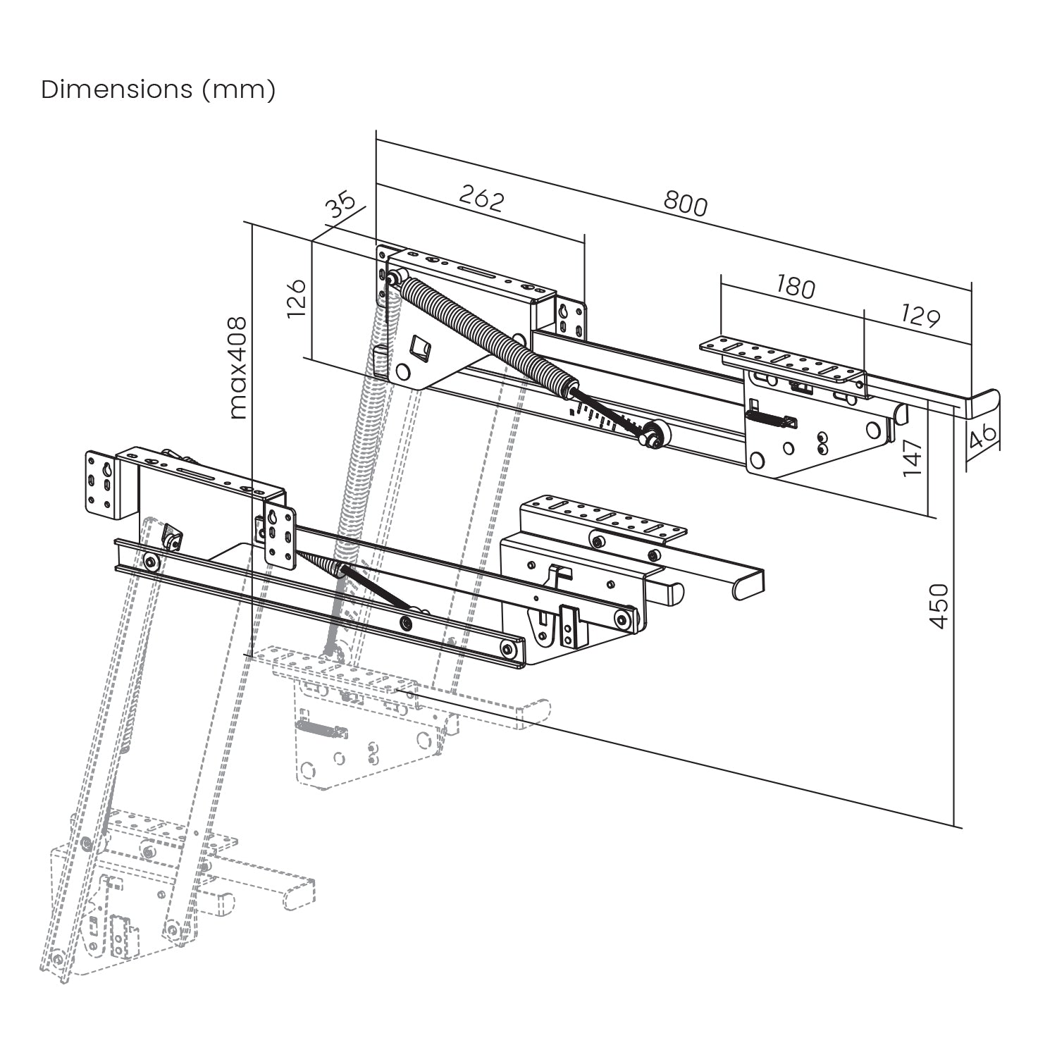 Extension d'armoire, levage de cuisine jusqu'à 20 kg de ressorts