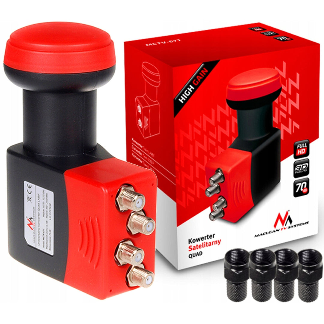 Carte satellite Maclean, LNB, Quad, High Gain, + 4x wtyki F, MCTV-671