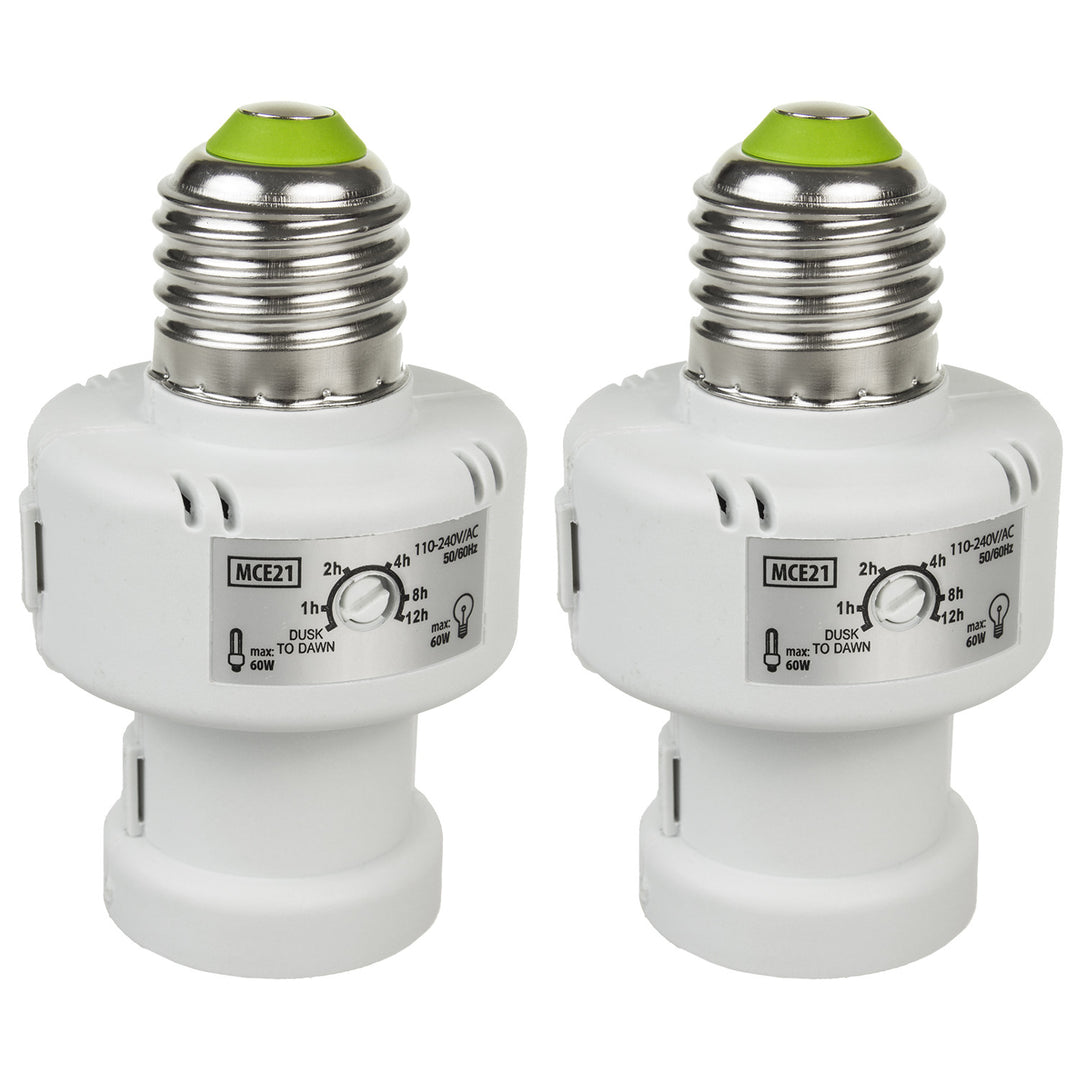 Support d'ampoule Maclean, E27, max. 100W, avec détecteur de crépuscularité, minuterie, blanc, MCE21W, 2 pièces