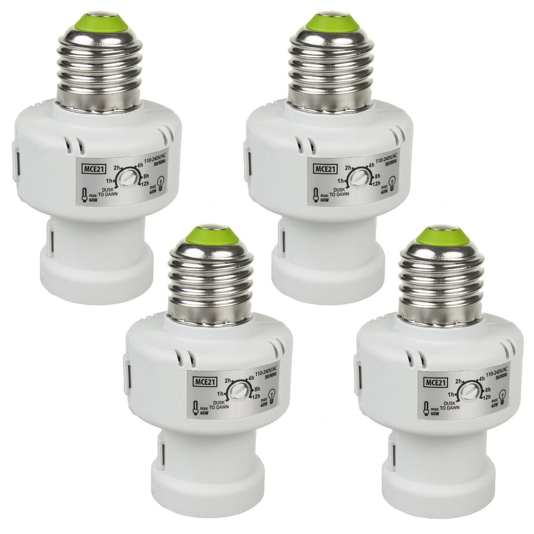Support d'ampoule Maclean, E27, max. 100W, avec détecteur de crépuscularité, minuterie, blanc, MCE21W, 4 pièces