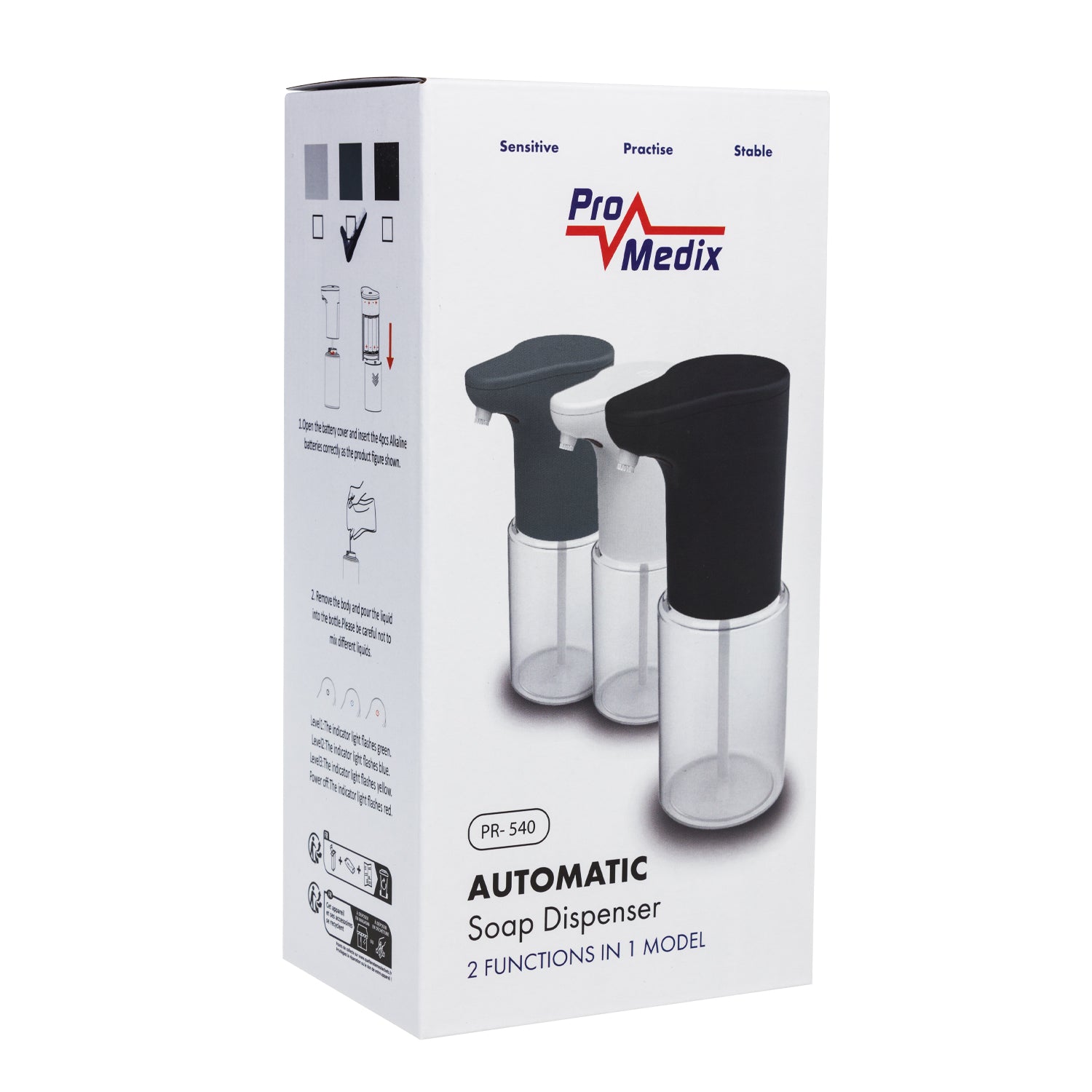 Le distributeur automatique Promedix PR-540 est un appareil pratique pour la distribution de savons liquides, de gels liquides et désinfectants, de gels douche, de shampooings, etc. D'une capacité de 300 ml, il est idéal pour une utilisation à domicile ou dans les lieux publics. Alimenté par quatre piles AA, il est pratique et facile à utiliser. Le distributeur est équipé d'un capteur de mouvement infrarouge, de sorte qu'une petite quantité de liquide est libérée lorsque vous placez votre main sous le capteur. Un réglage en trois étapes de la quantité de liquide libérée permet de personnaliser le distributeur. En outre, un embout est inclus qui, une fois vissé, permet de distribuer le liquide sous forme de spray.