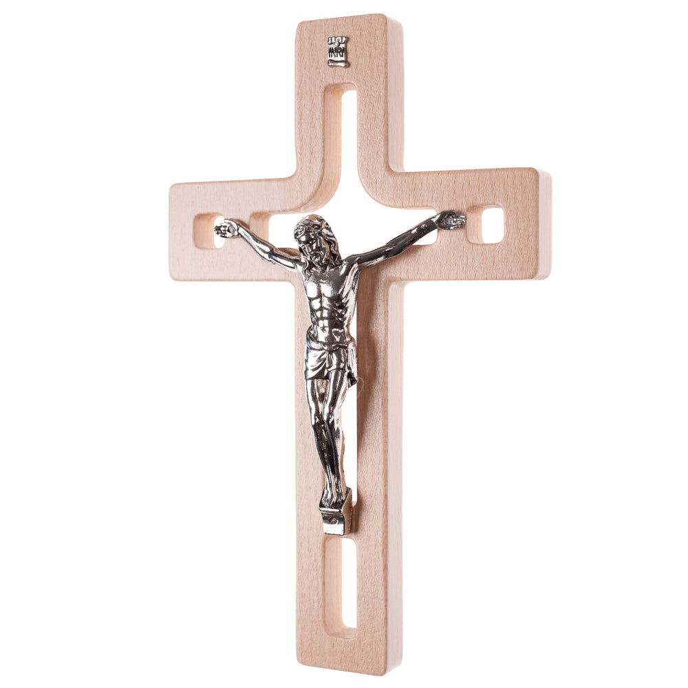 Modern natuurlijk houten hangkruis 25x16x1,6 cm