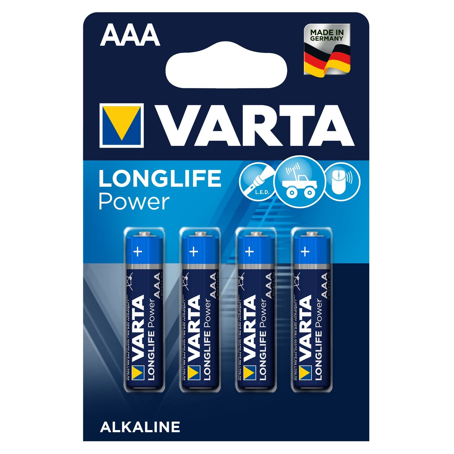 4x piles alcalines Varta Longlife Power AAA R3 LR3