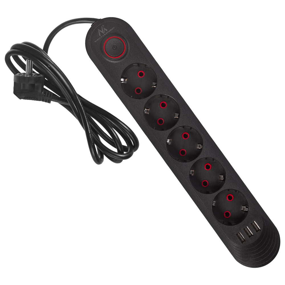 Multiprise Maclean, rallonge 3 prises + 3xUSB, 110-240V AC 50/60Hz, 2.1A max 2500W, 1.5m, noir, MCE394 B