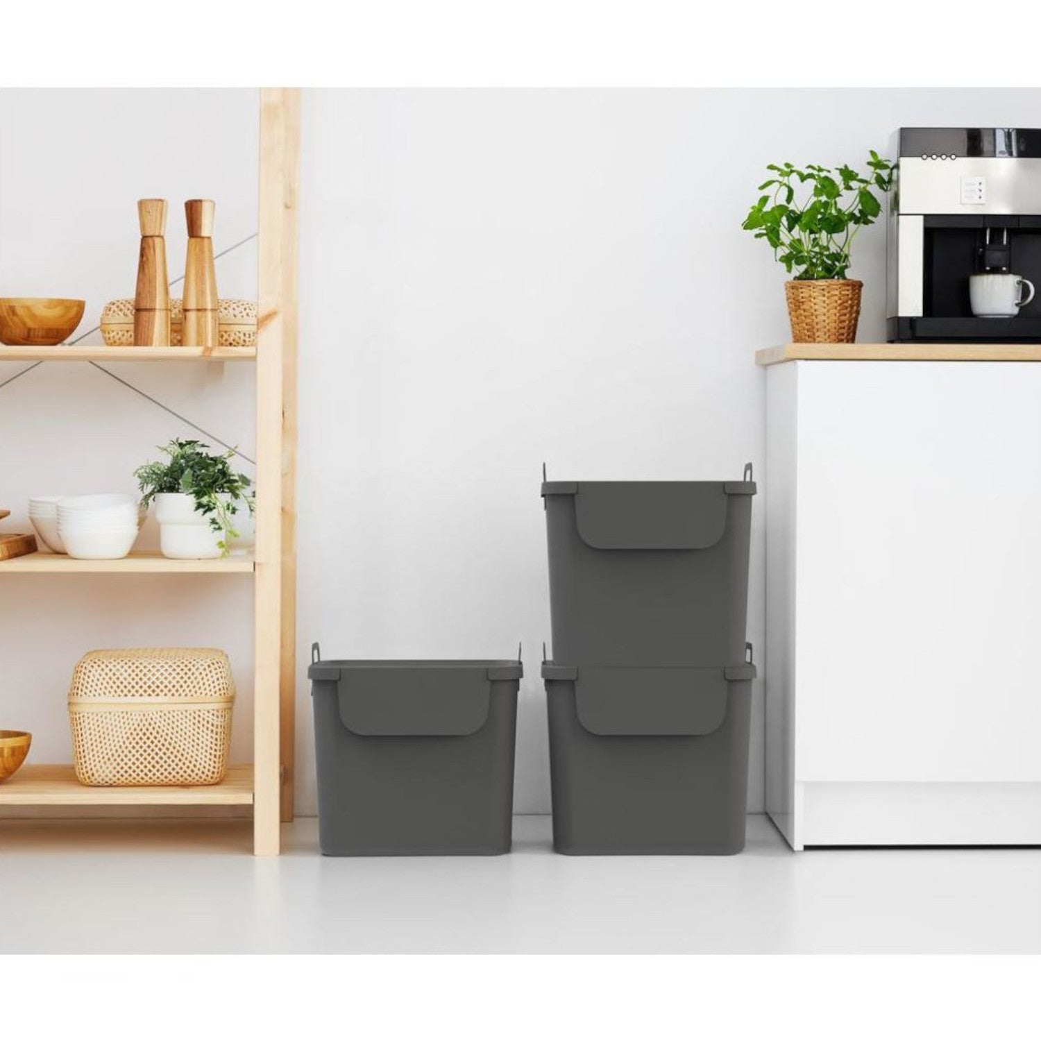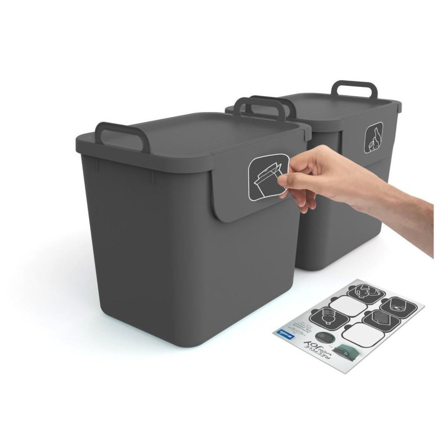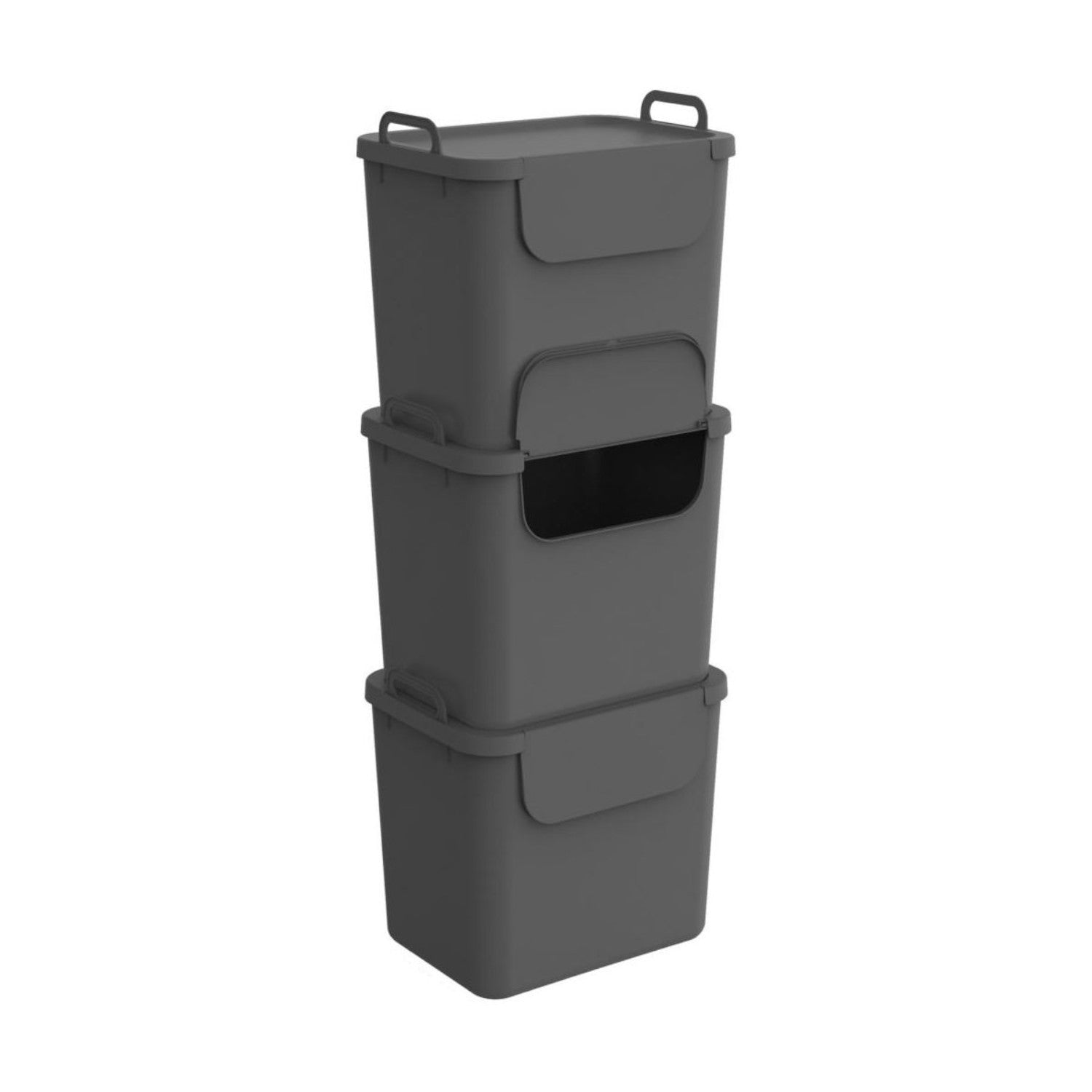 3x 30L Poubelle avec couvercle Système de recyclage des déchets Système de tri des déchets Deux poignées Fabriqué à partir de matériaux 100 % recyclés (Anthracite)