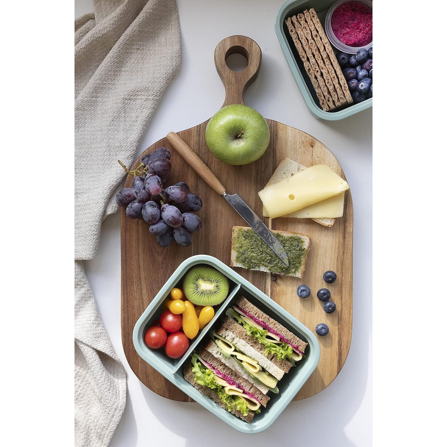 Contenant alimentaire Dual Curver, couvercle étanche, valve dans le couvercle, 100% recyclé, peut être utilisé au micro-ondes, deux compartiments 0.6L + 0.3L, 250000