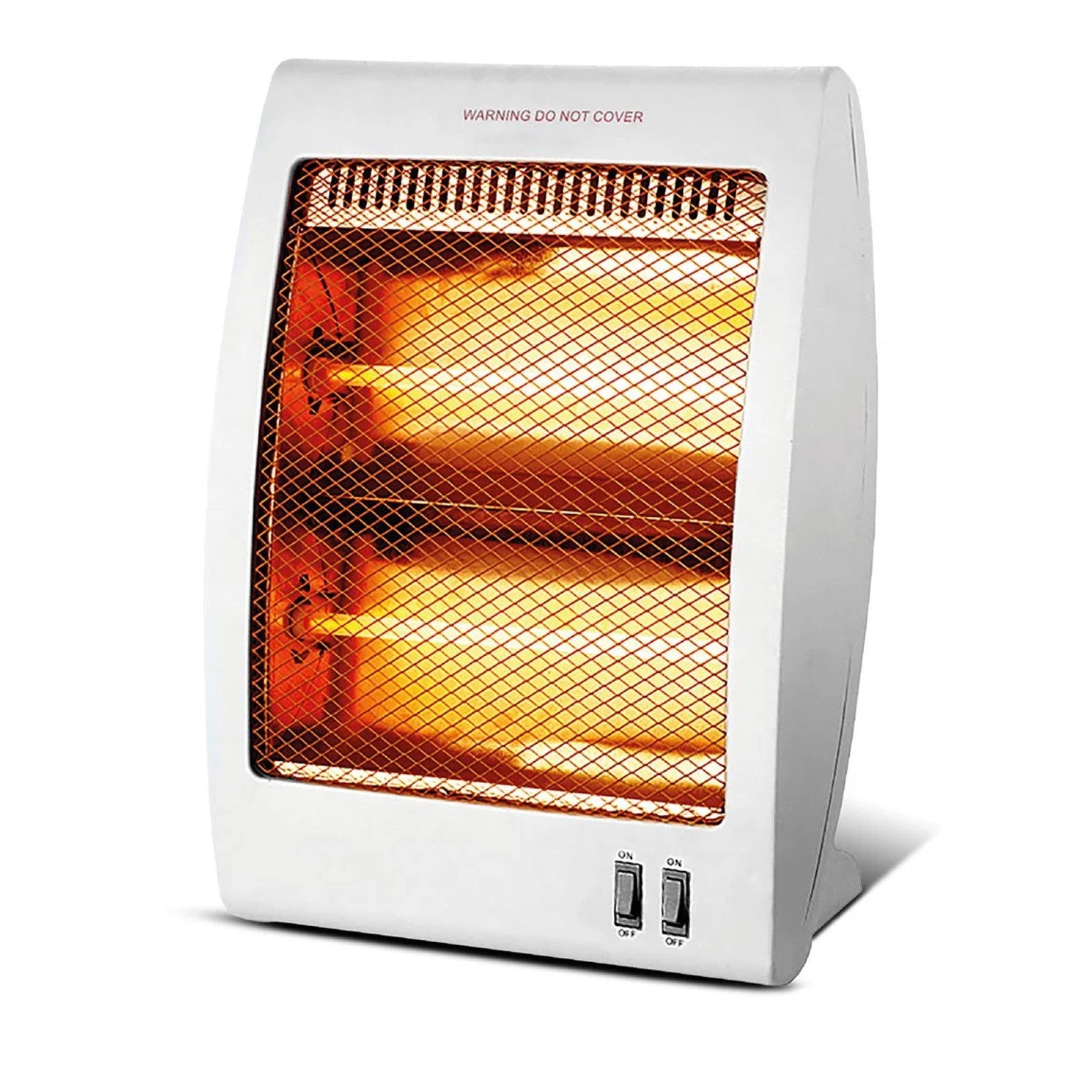 Ce radiateur électrique portable est fabriqué à partir de matériaux durables. Le boîtier est en plastique de haute qualité, tandis que l'élément chauffant est constitué de deux puissants tubes de quartz. Le chauffage infrarouge se caractérise par une puissance de 800 W (chacun des tubes de quartz a une puissance de 400 W).