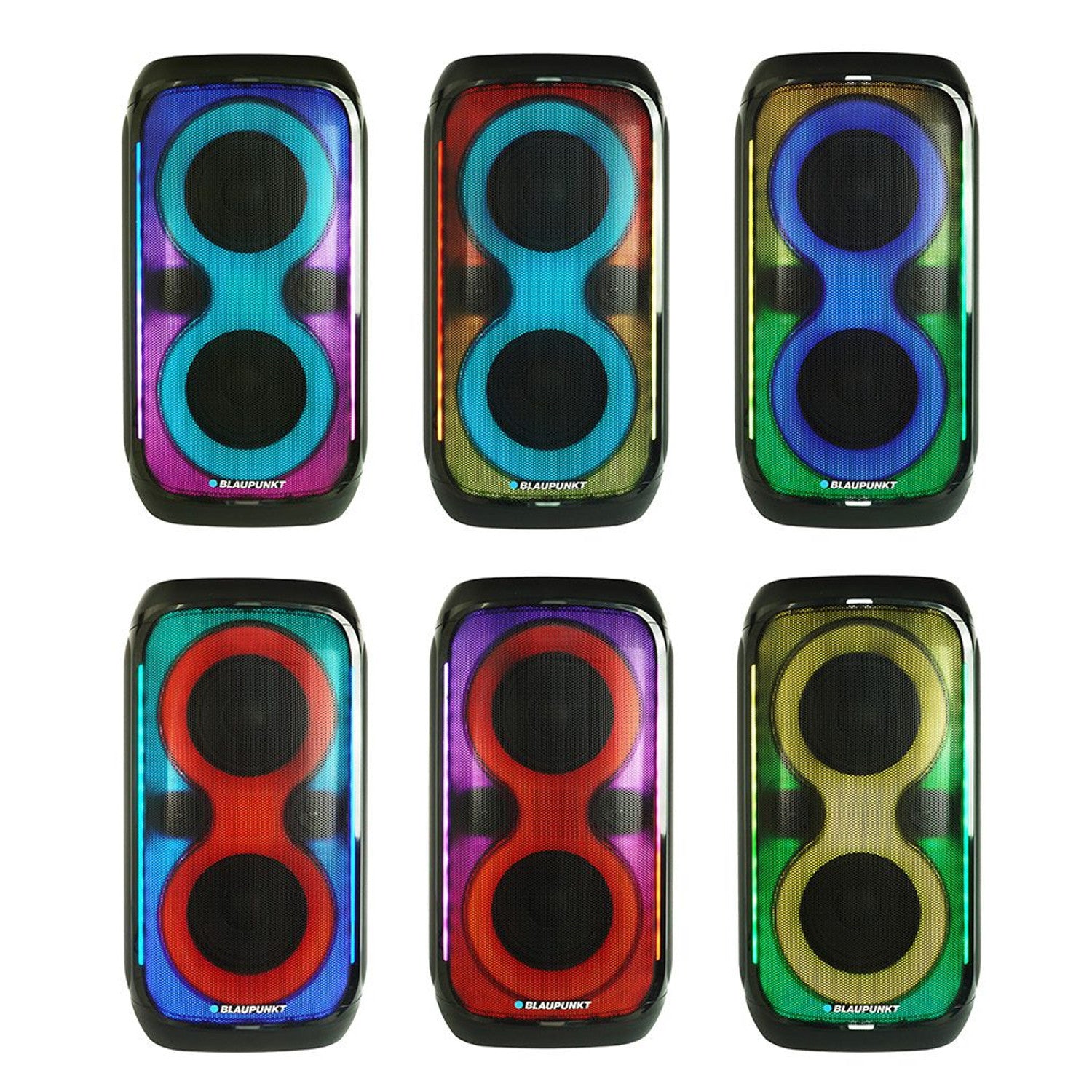 Enceinte Blaupunkt Party Box, éclairage LED, Bluetooth, USB et AUX, radio FM, fonction karaoké, télécommande, autonomie de la batterie jusqu'à 18h, PB60X
