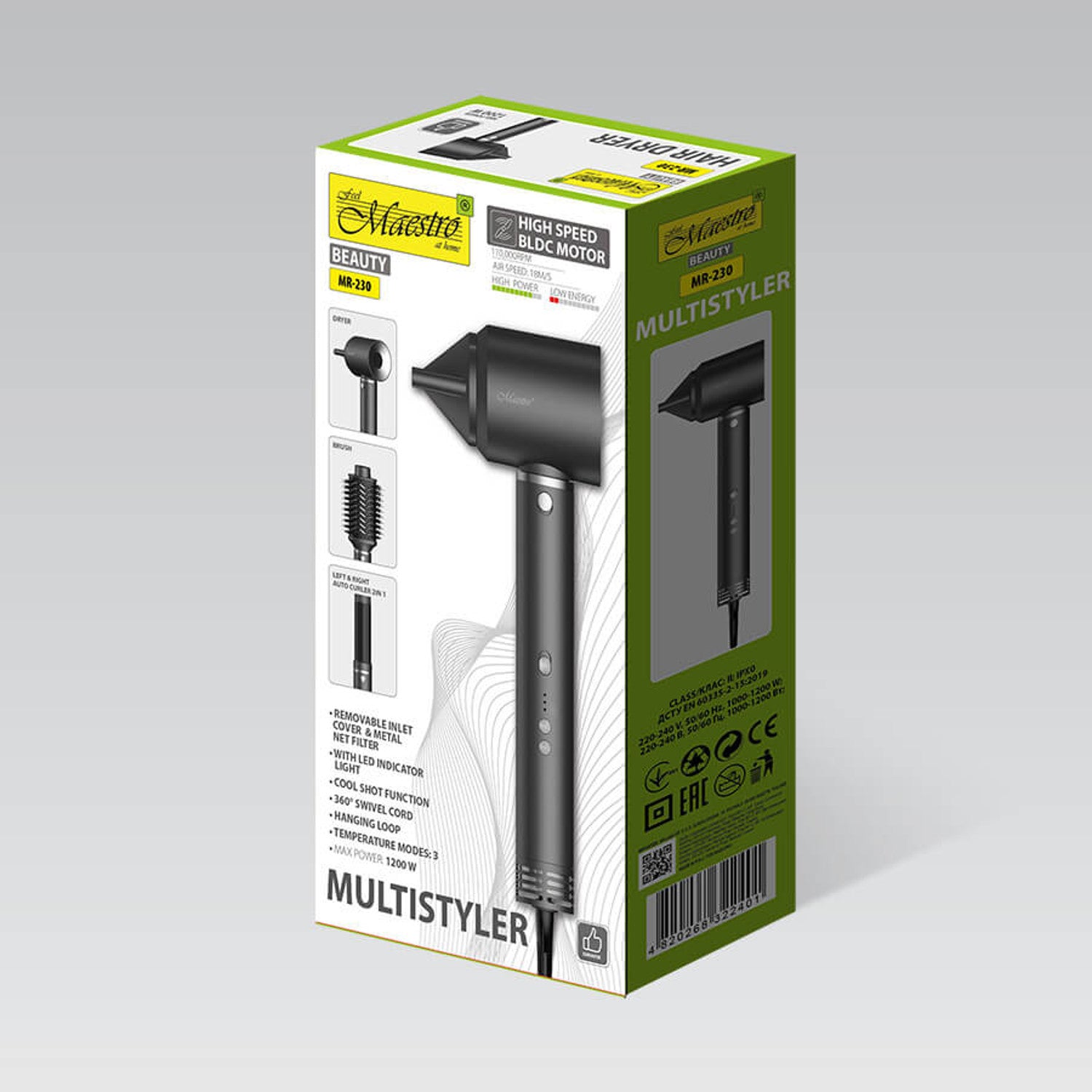 Maestro multistyler/set de soins capillaires, sèche-cheveux, brosse-sèche, fer à friser automatique, puissance 1200W, 2 réglages de température + souffle froid, MR-230