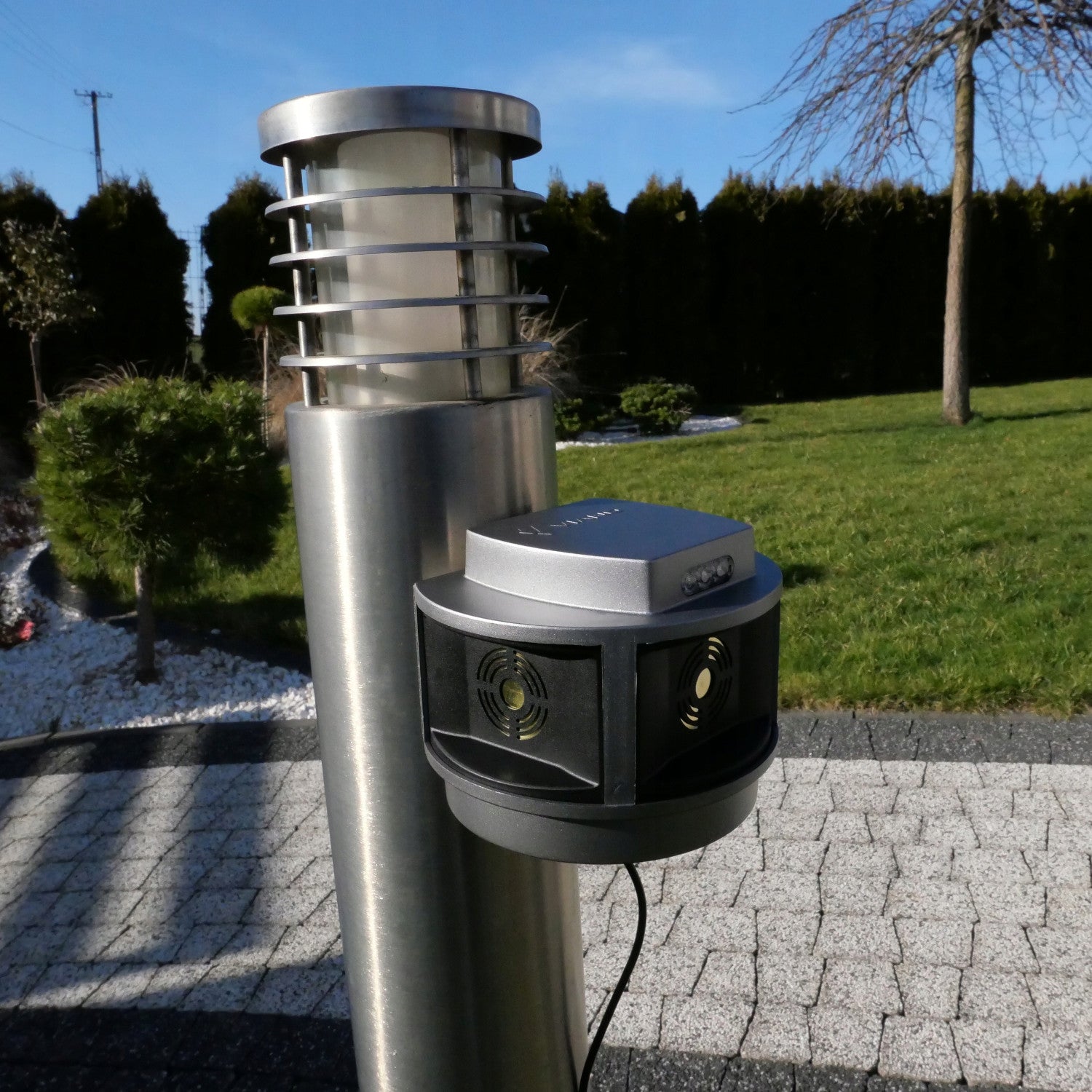 L'appareil peut fonctionner en émettant uniquement des sons et des ultrasons, qui sont très gênants pour les nuisibles. Ces ondes ont un effet négatif sur le système nerveux des nuisibles, ce qui les met mal à l'aise et les effraie, les poussant à fuir la zone protégée. Ou encore en mode RADAR, où un capteur de mouvement intégré activera automatiquement une lumière stroboscopique (cinq clignotements rapides par seconde) dès qu'un parasite indésirable pénètre dans la zone surveillée. En outre, le kit comprend une plaque métallique avec des trous qui, à l'aide des vis fournies, peut être vissée sur n'importe quelle surface et le répulsif peut alors y être fixé. De cette manière, le dispositif peut être fixé sur des panneaux de façade, des piliers en bois, des pergolas en bois, etc.